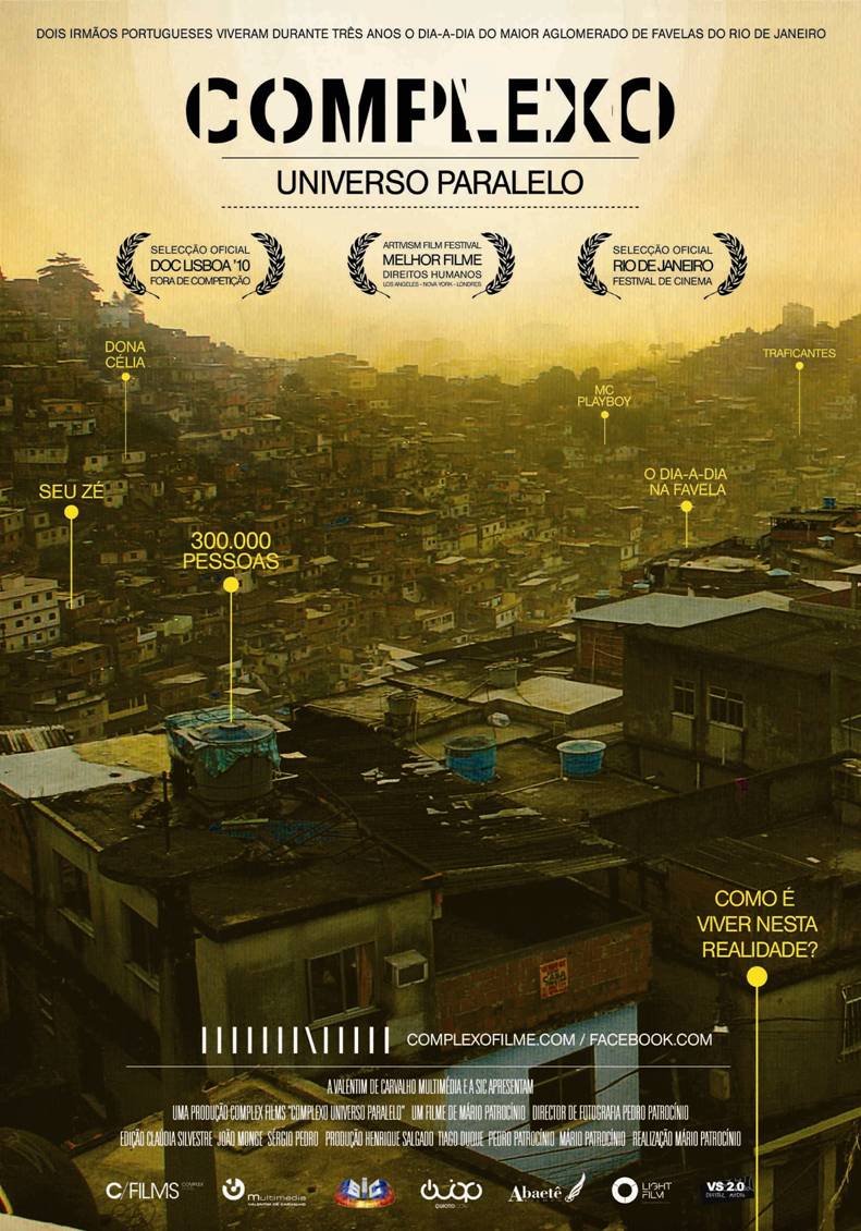 "COMPLEXO: UNIVERSO PARALELO", de Mário Patrocínio, aclamado entusiasticamente em vários festivais, é um poderoso documentário que retrata o dia-a-dia das pessoas que vivem no Complexo do Alemão, o maior aglomerado de favelas do Rio de Janeiro e que recentemente se tornou fonte de notícia à custa da operação policial lá exercida.