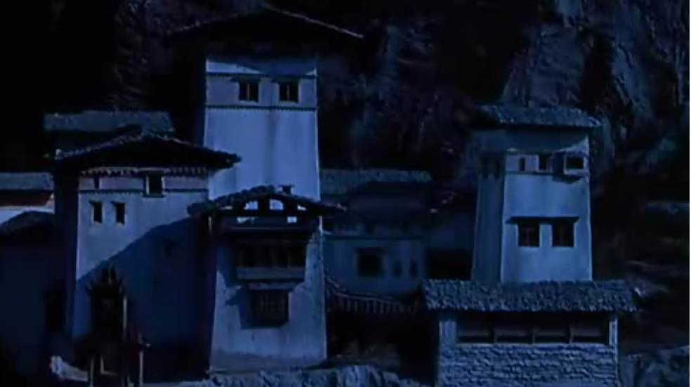 Falemos do filme e das imagens. A premissa é simples: somos convidados a acompanhar um grupo de freiras que parte para os Himalaias, onde são ordenadas a erigir uma comunidade religiosa e a construir um convento, o Convento da Santa Fé. O que torna o filme interessante é mesmo a simplicidade da história, complicada mais tarde de formas curiosíssimas. Durante a sua permanência no local, as freiras vão ter que enfrentar não só a forte resistência dos habitantes locais, mas também vão ter que lidar com algumas situações incómodas dentro do seu próprio grupo. Esta primeira imagem, na qual nos apresentam o palácio que virará convento, é verdadeiramente icónica, fruto da sua omnipresença ao longo do filme (até à noite a fotografia é belíssima), pelo que não podia nunca de a deixar de colocar aqui.