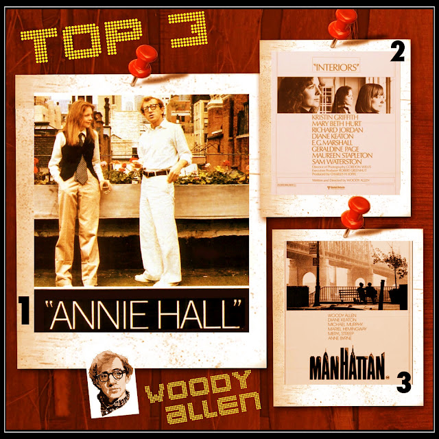 Já no caso de Woody Allen (aviso já que não sou um fervoroso fã dos seus filmes mais recentes, pelo que me considero mais um admirador confesso do que propriamente um devoto seguidor), fiquei satisfeito por ver a minha campanha positiva em relação a três filmes que considero serem a nata da filmografia de Woody Allen - "Hannah and Her Sisters", "Bullets over Broadway" e "The Purple Rose of Cairo" - que são habitualmente postos de lado nestes tops em detrimento dos mais óbvios (mas sim, não menos merecedores) "Annie Hall" e "Manhattan" (fiquei contente por ver os três entre as dez melhores obras - tecnicamente, "Bullets" não é uma das dez melhores, mas está, por empate de vários filmes, no décimo lugar). Devo dizer que achei surpreendente "Interiors" pontuar tão alto, porque não pensava que conseguisse tão boas notas (foi o meu sexto favorito, com nota 9, ainda assim) de toda a gente. Uma frustração pessoal: o exageradamente amado "Midnight in Paris" figurar no top-10. Não consigo entender. Pode ser embirração minha.